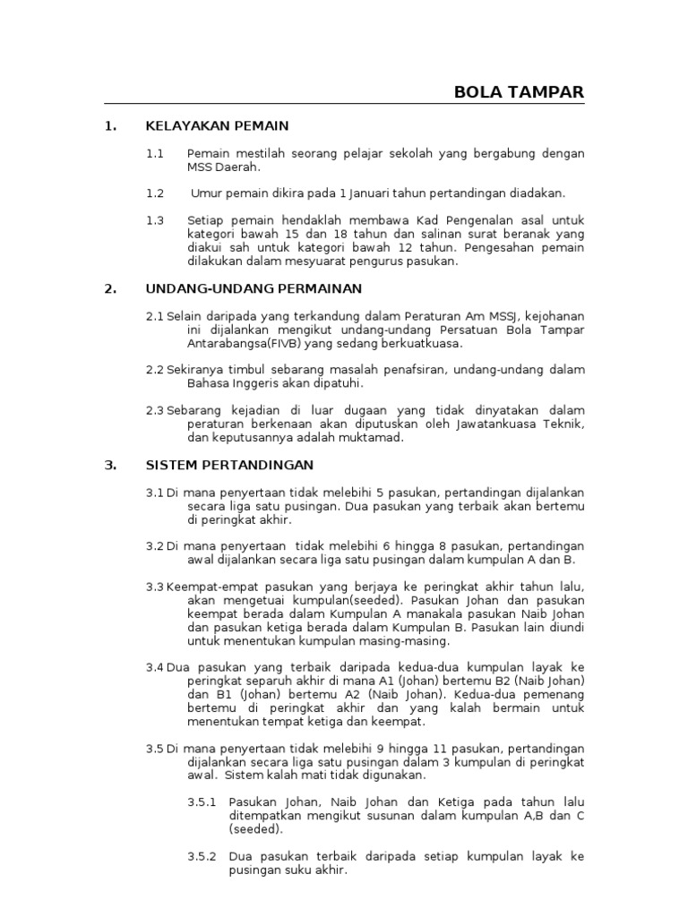 Doc Peraturan Bola Tampar Mss Selangor 2014 Abdul Aziz Haji Salleh Academia Edu
