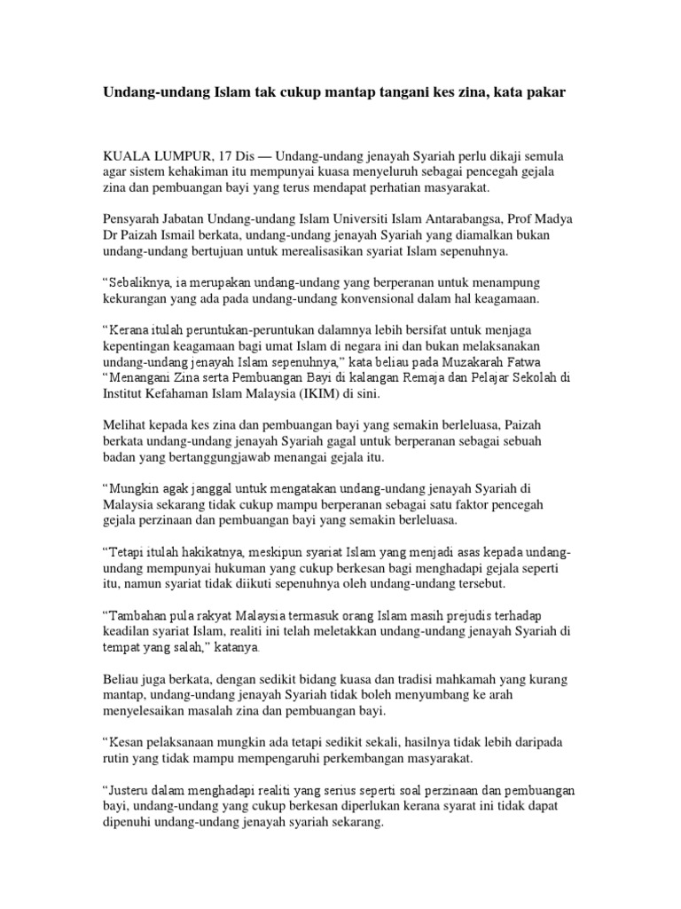 Undang Undang Islam Tak Cukup Mantap Tangani Kes Zina