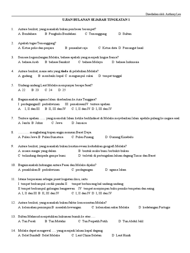 Soalan Latihan Sejarah Tingkatan 1 Bab 5 Soalan Latihan Sejarah Tingkatan 1 Bab 5 Kegemilangan Melaka 1 Dalam Sistem Pentadbiran Melaka 3 Nyatakan Tugas Tugas Penghulu Bendahari