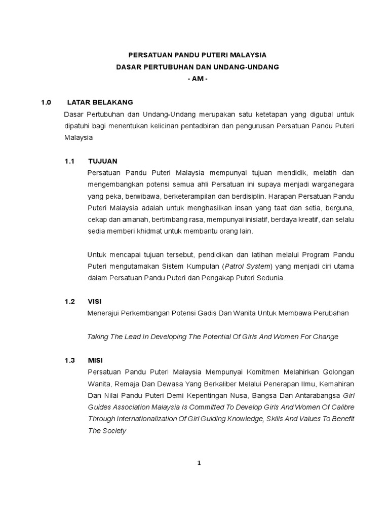 Persatuan Pandu Puteri Malaysia Dasar Pertubuhan Dan Undang Undang Am