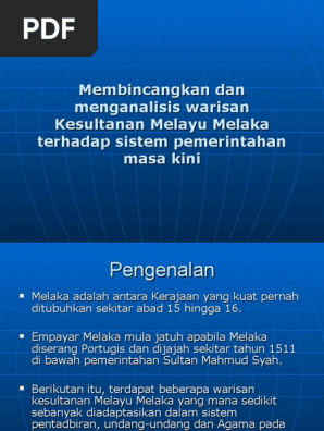 Warisan Kesultanan Melayu Melaka Dalam Sistem Pemerintahan Di Malaysia