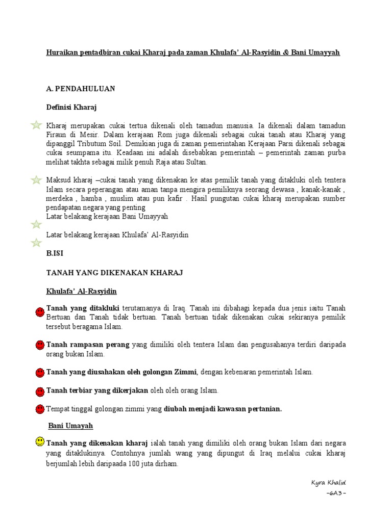 Huraikan Perlaksanaan Kharaj Pada Zaman Khulafa Al Rasyidin